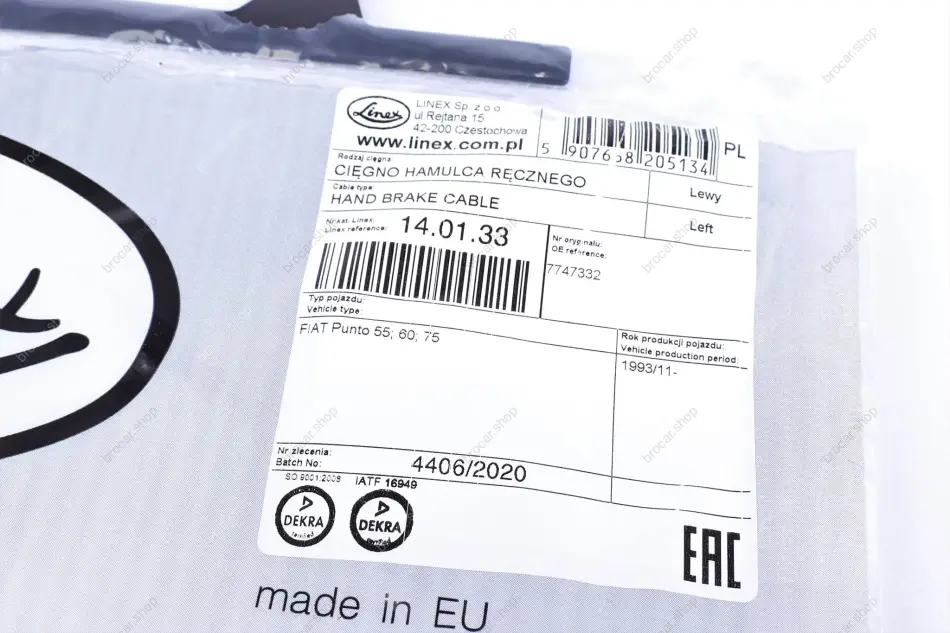 Трос ручника (задній) (L) Fiat Punto 93-99 (1457/1280 мм) linex 140133