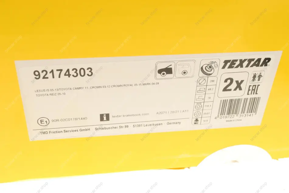 Бренд Textar входить до концерну Nisshinbo Holdings Inc – одному з найбільших у галузі гальмівних систем. Номенклатурний список продукції, що випускається, досить великий і включає гальмівні колодки для дискових і барабанних гальм, гальмівні диски, гальмівні барабани, професійні інструменти для гальмівних компонентів, очисник гальм. За заявою виробника, високоякісне лиття та суцільне зовнішнє покриття означає відмінні характеристики, низький рівень шуму, тривалий термін служби та високий рівень безпеки виробів. Виробнича програма реалізується у суворій відповідності до вимог ОЕ