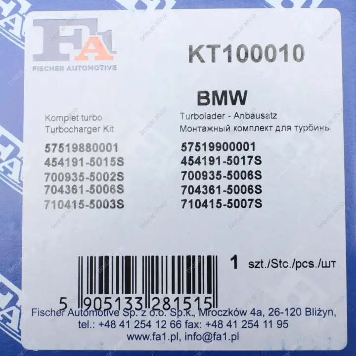 Комплект прокладок турбины BMW 3 (E46)/5 (E39)/7 (E38) 98-05 fa1 kt100010