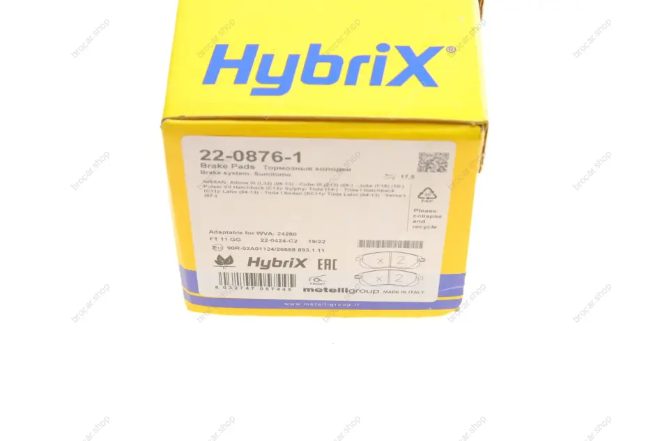 Колодки тормозные (передние) Nissan Juke/ Pulsar/ Tiida 07- metelli 2208761