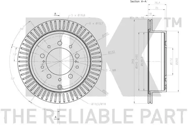 Тормозной диск зад. Lexus LX570/Toyota Land Cruiser VII (J200) 4.5TD 08- nk 2045162