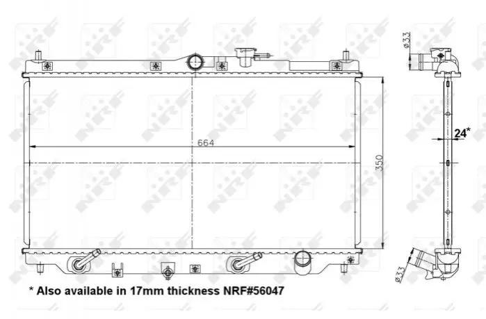 NRF – известный голландский производитель радиаторов и других запчастей охлаждения двигателей и кондиционирования воздуха. Ассортимент продукции каталога NRF насчитывает более 8000 наименований и постоянно расширяется. Часть продукции идет прямо на заводы европейских и азиатских автоконцернов. Однако радиаторы и комплектующие к ним для вторичного рынка автозапчастей высоко оценили автолюбители. В настоящее время NRF покрывает около 95% автопарка Европы. Под именем данной фирмы автолюбители могут найти оригинальные радиаторы, обладающие высокой стойкостью к коррозии и вибрации, а также высокой аэродинамичностью проточной части.