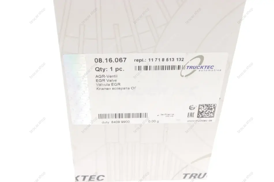 Клапан EGR BMW 3 (F30/G20)/5 (F10/G30) 09- (B47/B57) trucktec 0816067
